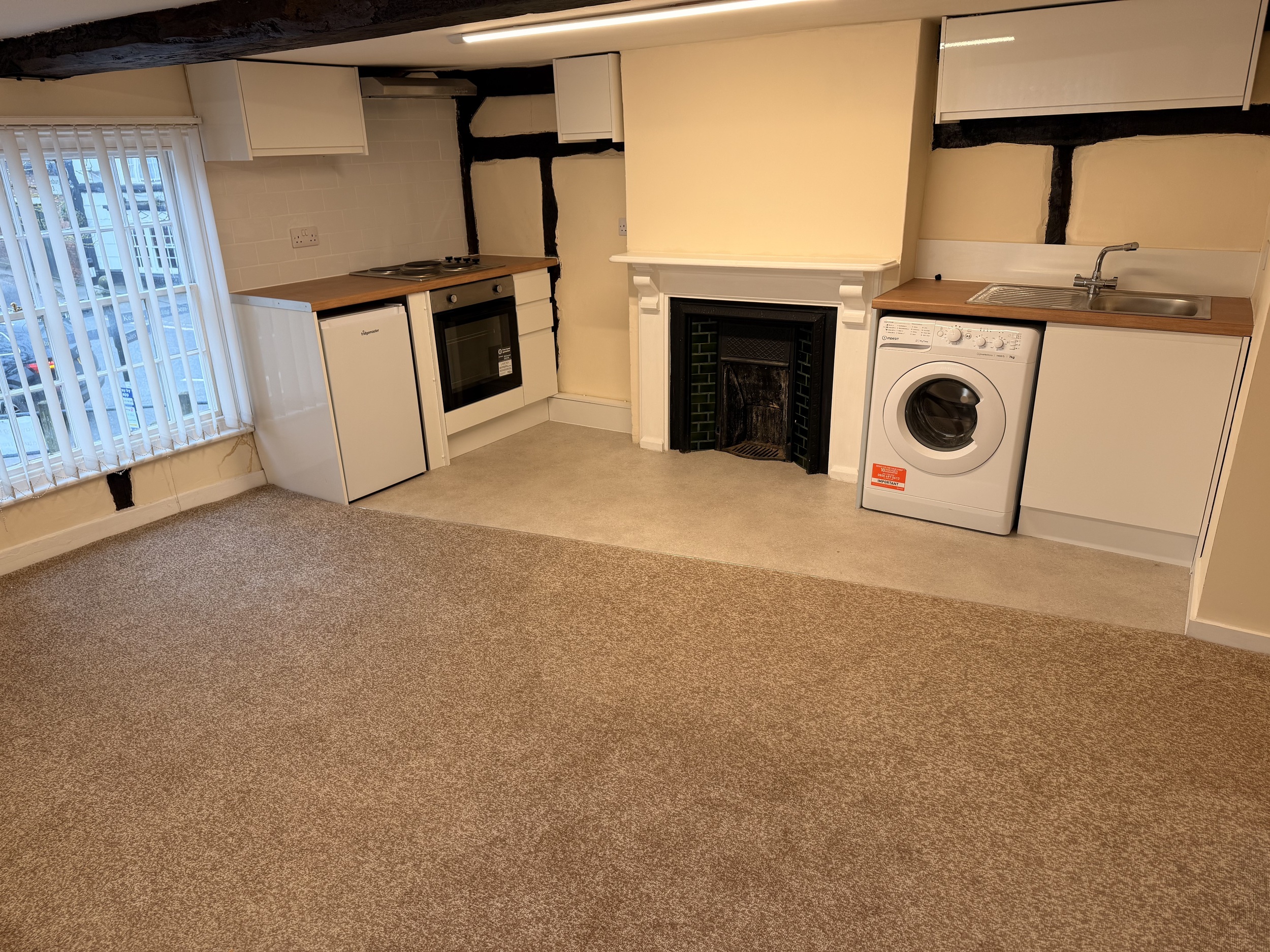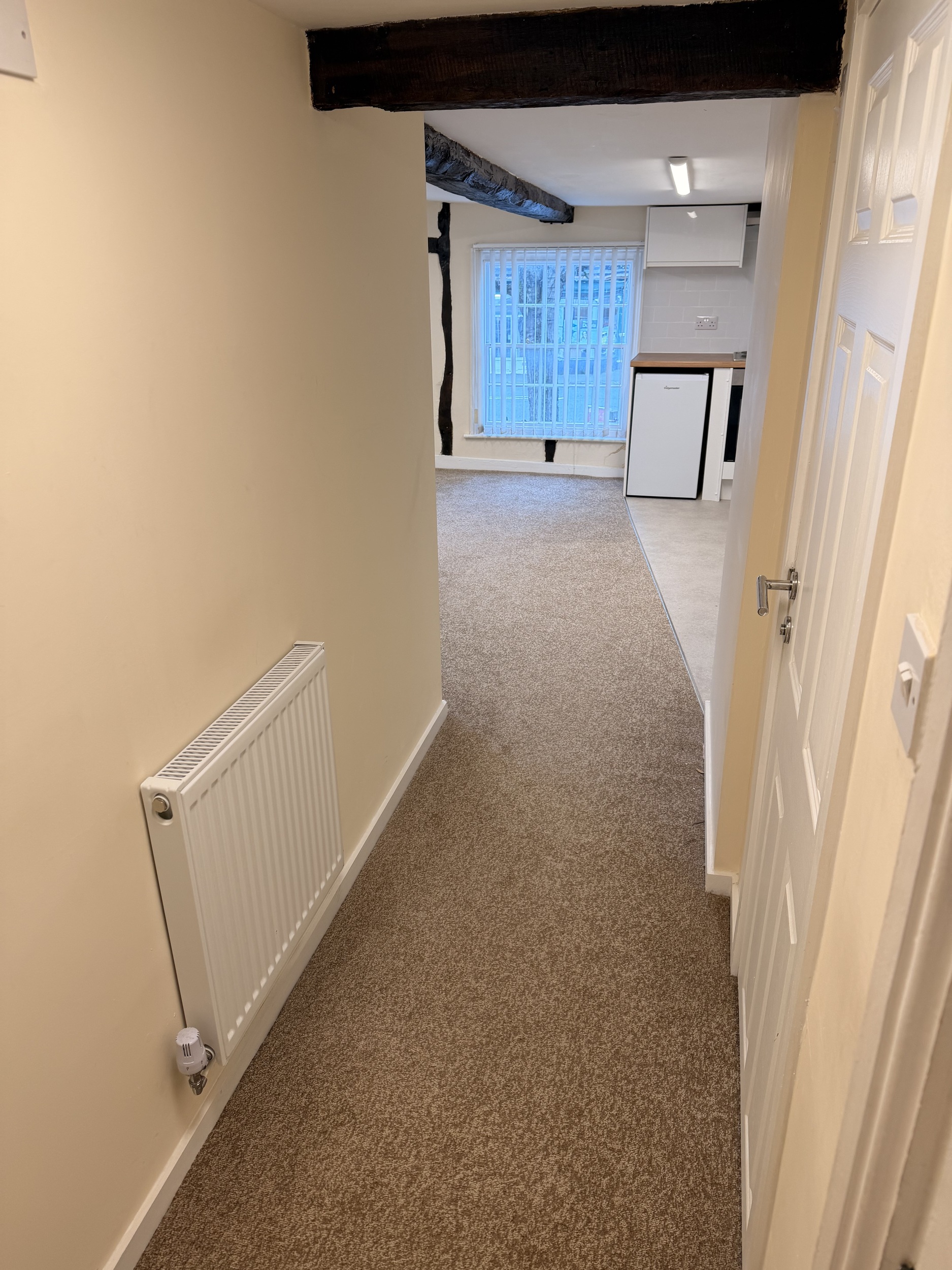 Positioned on the first floor of a characterful listed building, this newly refurbished apartment combines modern comfort with period charm. Features include exposed beams, original sash windows, and stylish new flooring and décor throughout.