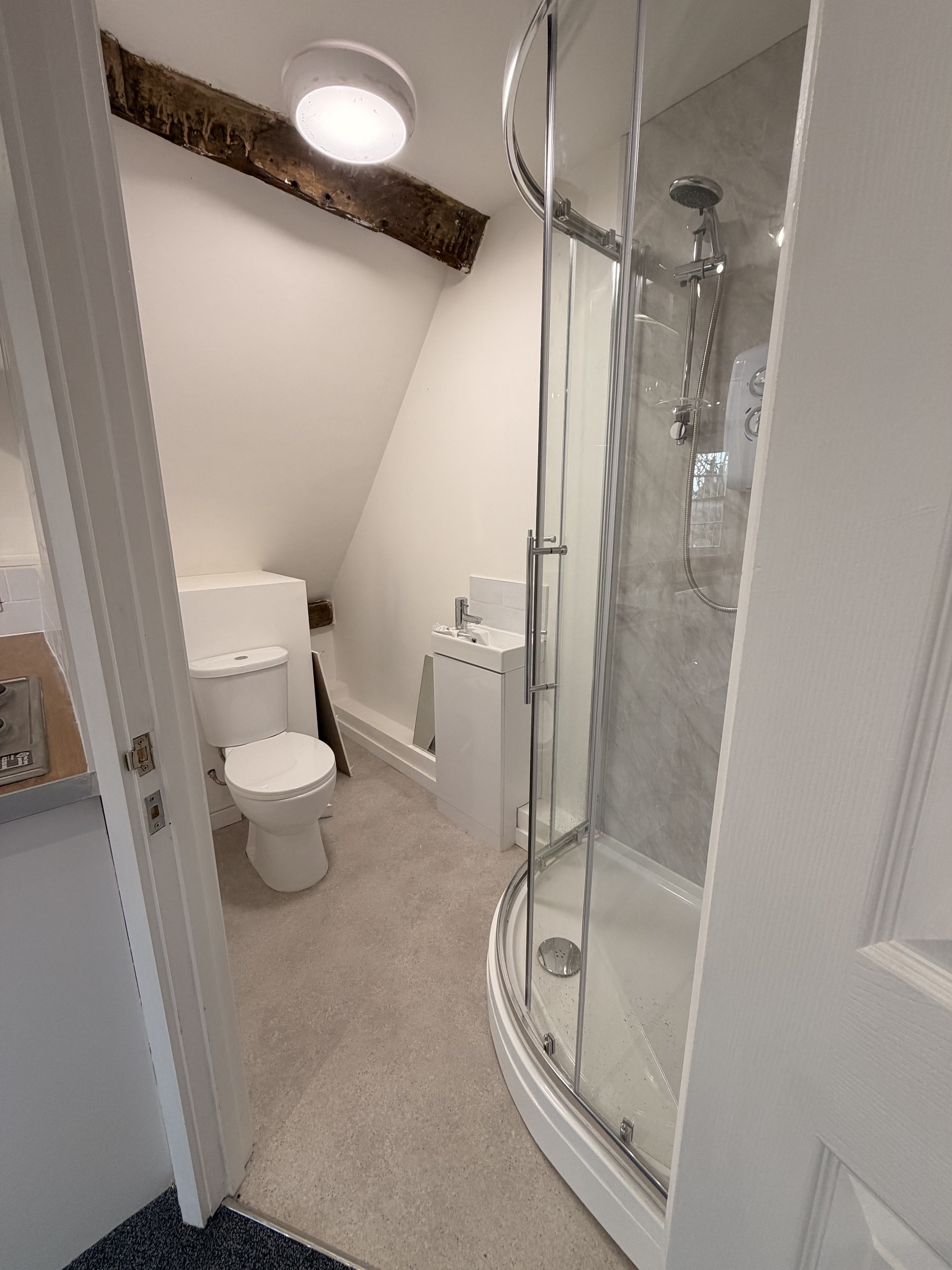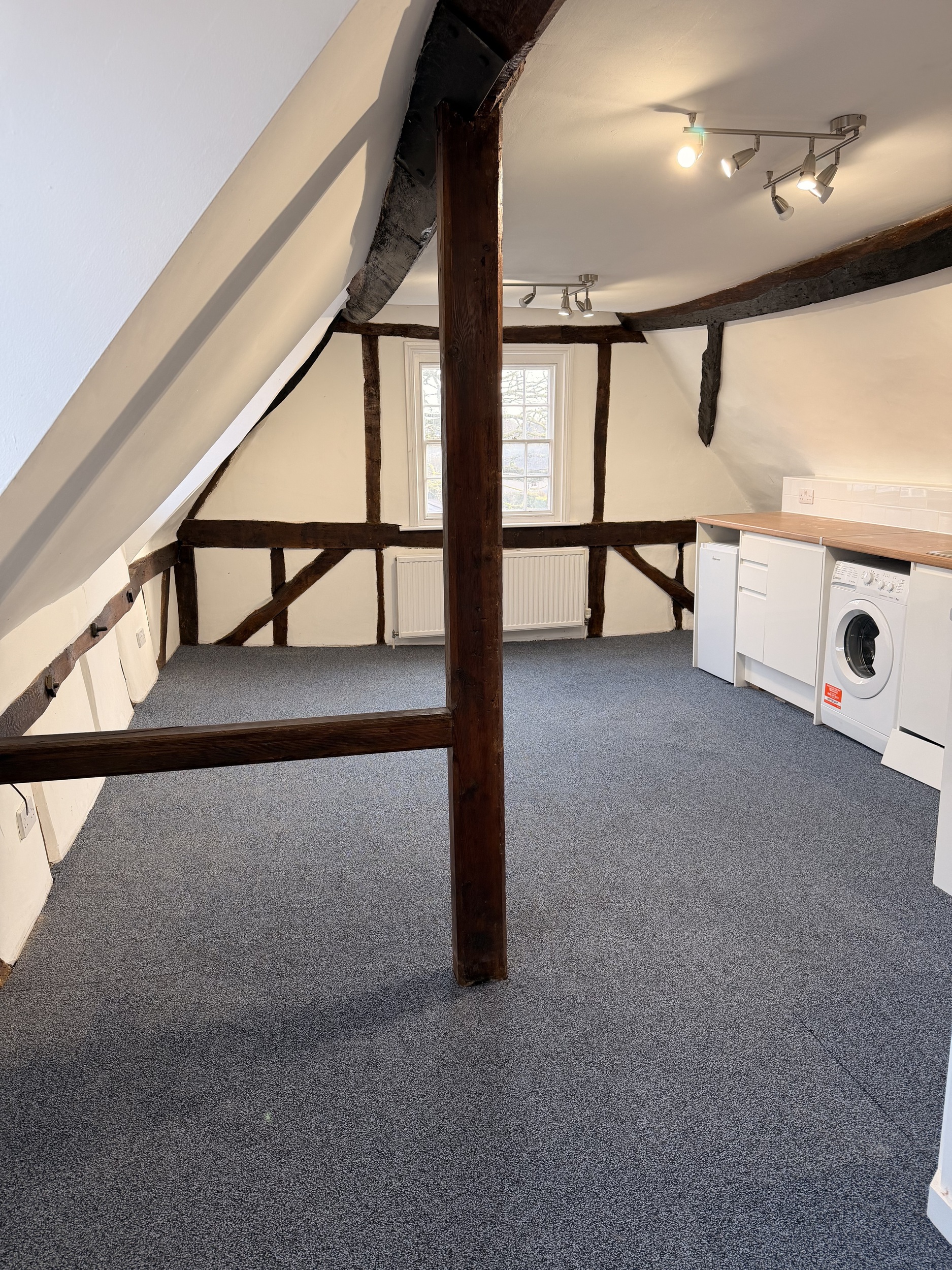 Positioned on the second floor of a characterful listed building, this newly refurbished studio apartment combines modern comfort with period charm. Features include exposed beams, original sash windows, and stylish new flooring and décor throughout.
