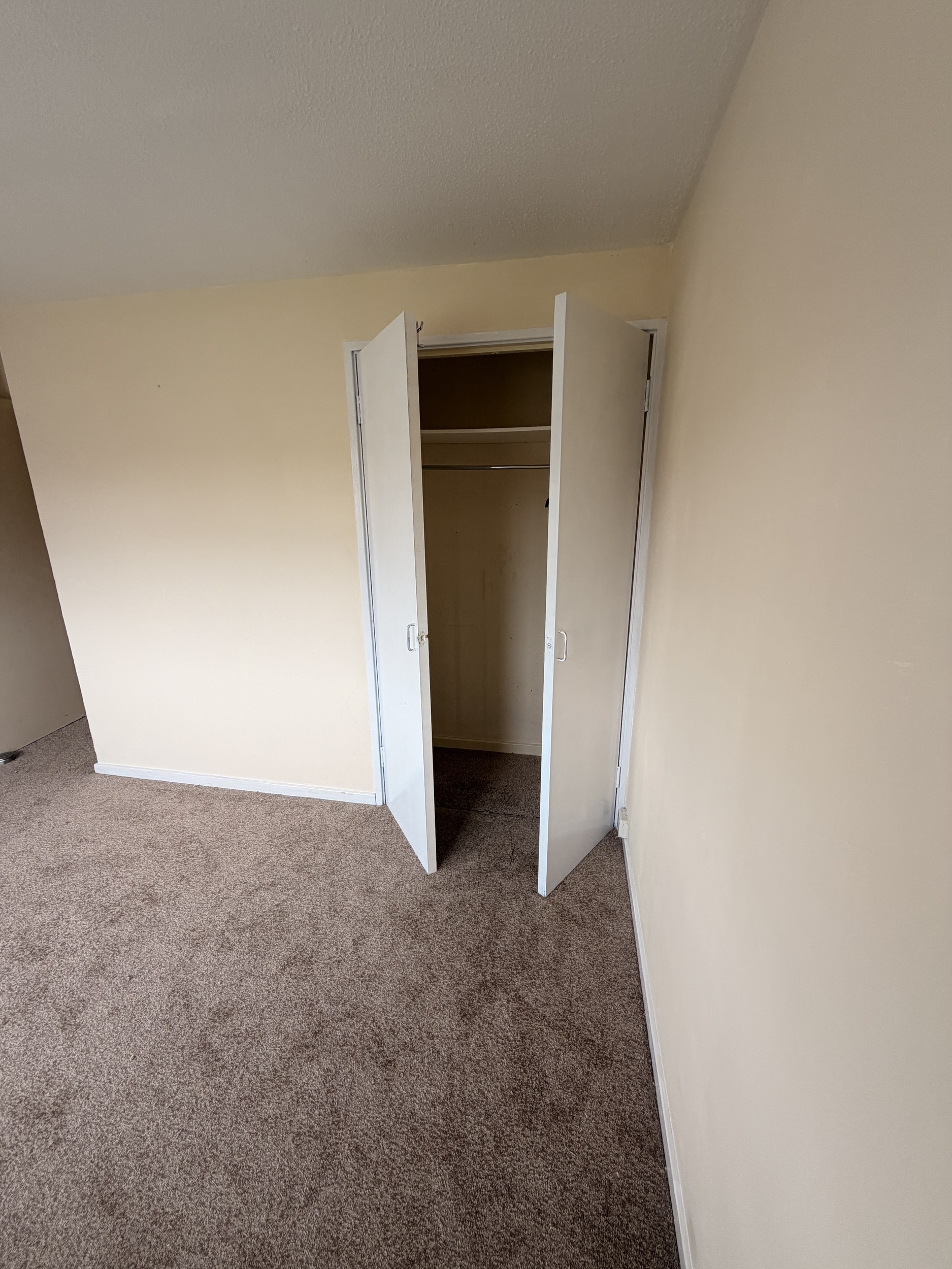 The double bedroom is generously sized and includes a built-in double wardrobe, providing ample storage space. The bathroom is fitted with an mixer shower over the bath.
