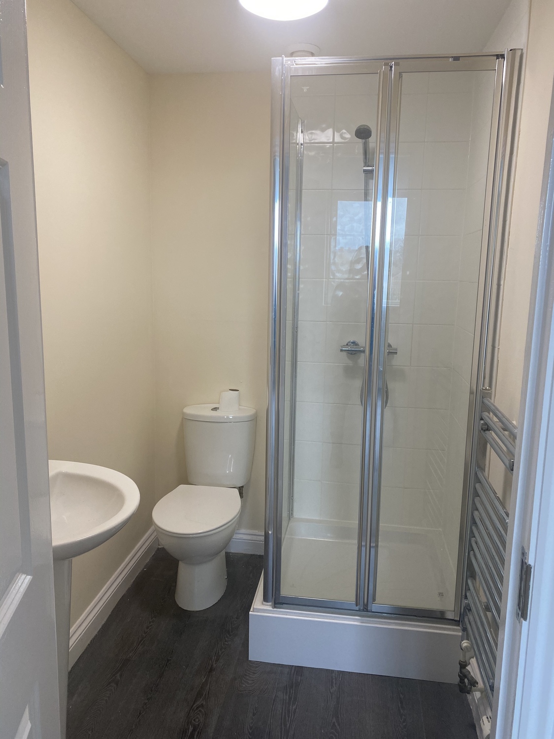 Entrance hall, bathroom with thermostatic shower over bath. Large master bedroom with ensuite shower room. Bedroom 2 is a small double.
