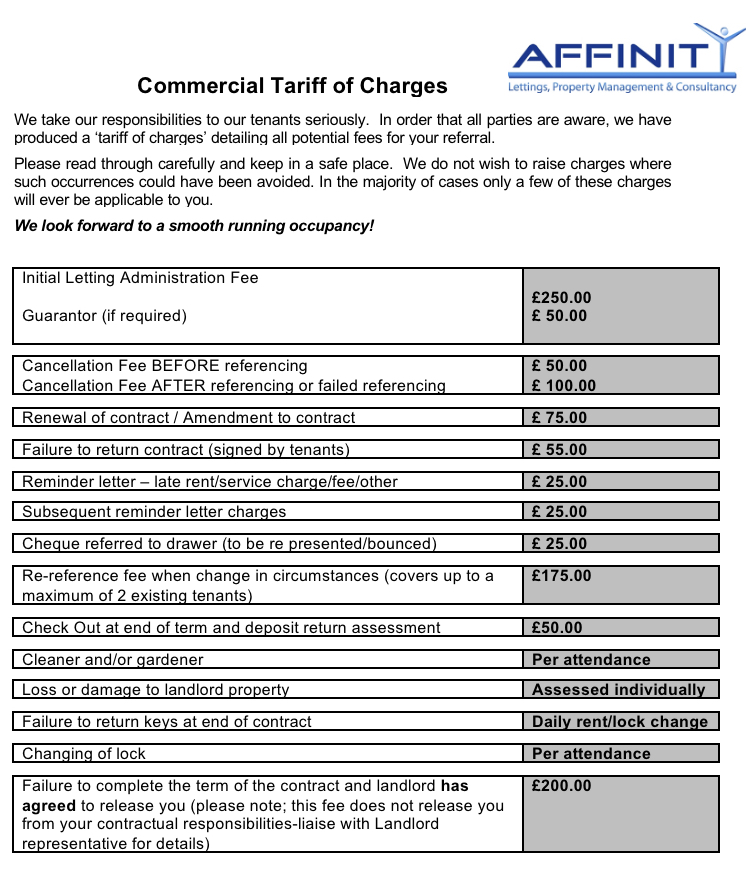 See our Tenant Fee Structure for a clear explanation of all of our fees.